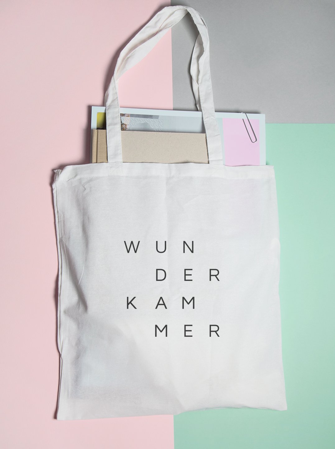 The visual identity is inspired by the meaning of the word Wunderkammer, the cabinet of curiosities. The typographic logo represents the letters of the word in a square grid as the curiosities exhibited in the cabinet.