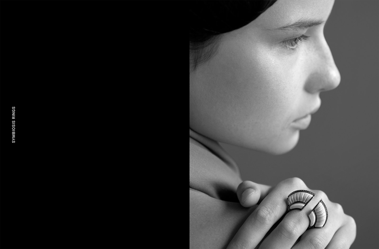 The Look Book ‘Symbiosis’ is the first fine jewelry collection of designers’s Ioanna Souflia, introducing a modern take on luxury. Inspired by the designer’s black and white cosmos where Thasos marble and gold, embellished with grey and black diamonds, playfully co-exist into fashion-forward pieces that stimulate the senses.