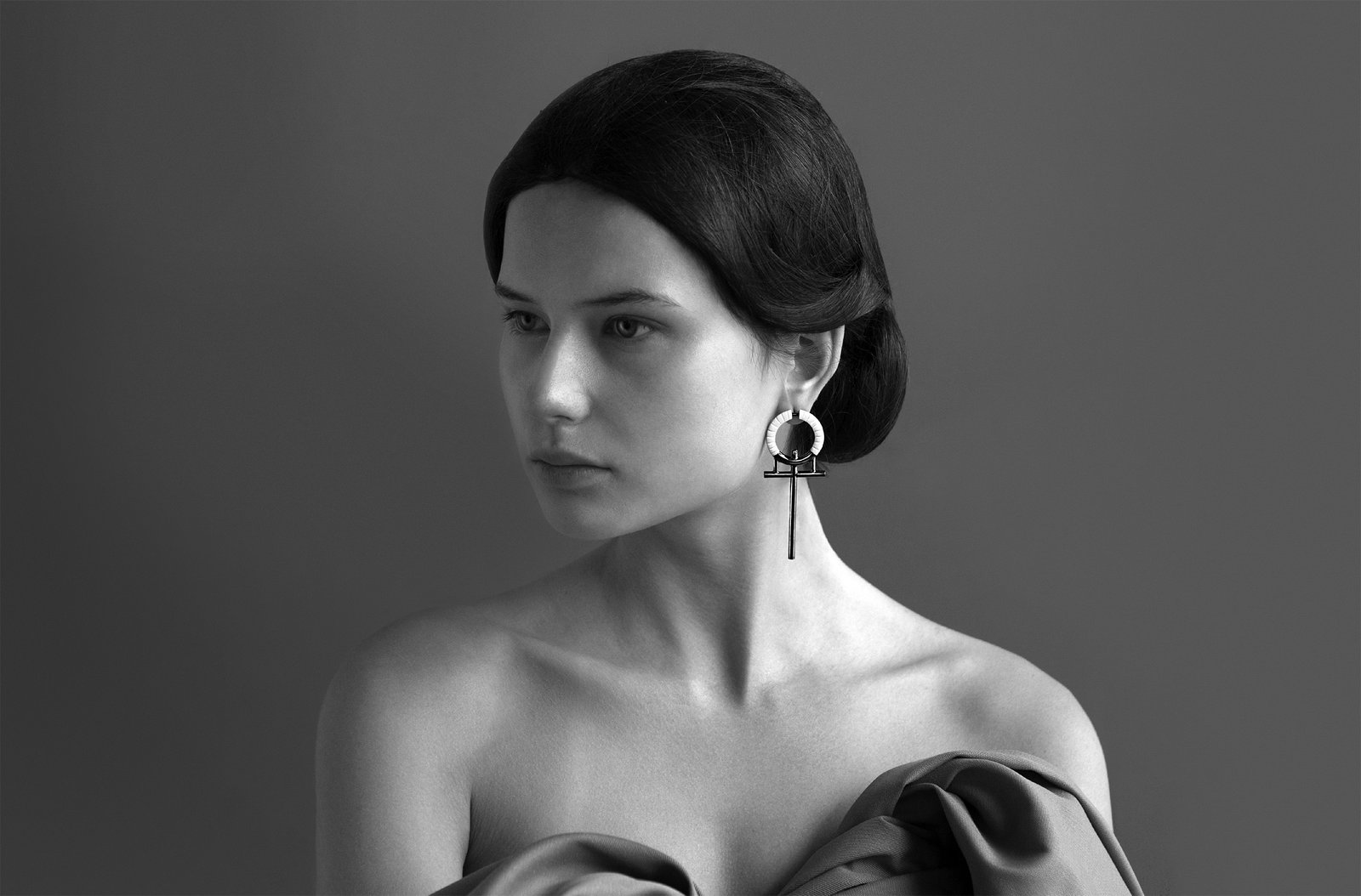 The look book presents the precious jewelries as sculptural pieces which stand in the central point creating dialogues with the photographs and co-exist in a symbiotic relationship. The contrast of black and white flows inside the pages with minimal forms and different sizes creating a harmonic final result which engages the whole collection and reflects the brand’s aesthetic and the designer’s vision of precious jewelry.